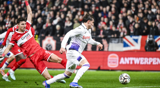 Trois minutes plus tard seulement, les Mauve et Blanc encaissaient un deuxième but des oeuvres de Thibo Somers qui, parfaitement servi par Christopher Scott, doublait la mise de la tête (19e, 2-0).Dans le dur, Anderlecht était proche de se retourner une troisième fois. Kerk, à l’entrée du petit rectangle) manquait toutefois le cadre (23e).