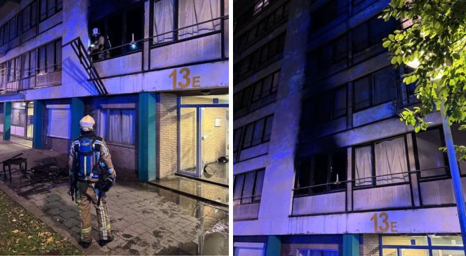 La centrale d’urgence 112 a reçu plusieurs appels vers 21h35 pour un feu déclaré au premier étage d’une tour résidentielle. La colonne “immeuble élevé” des pompiers de Bruxelles a immédiatement été dépêchée sur place. À l’arrivée des premières équipes du poste avancé d’Anderlecht, aucune flamme n’était visible, mais une épaisse fumée remplissait l’appartement concerné ainsi que les couloirs. Le logement était totalement ravagé et portait des traces évidentes d’incendie sur la façade.